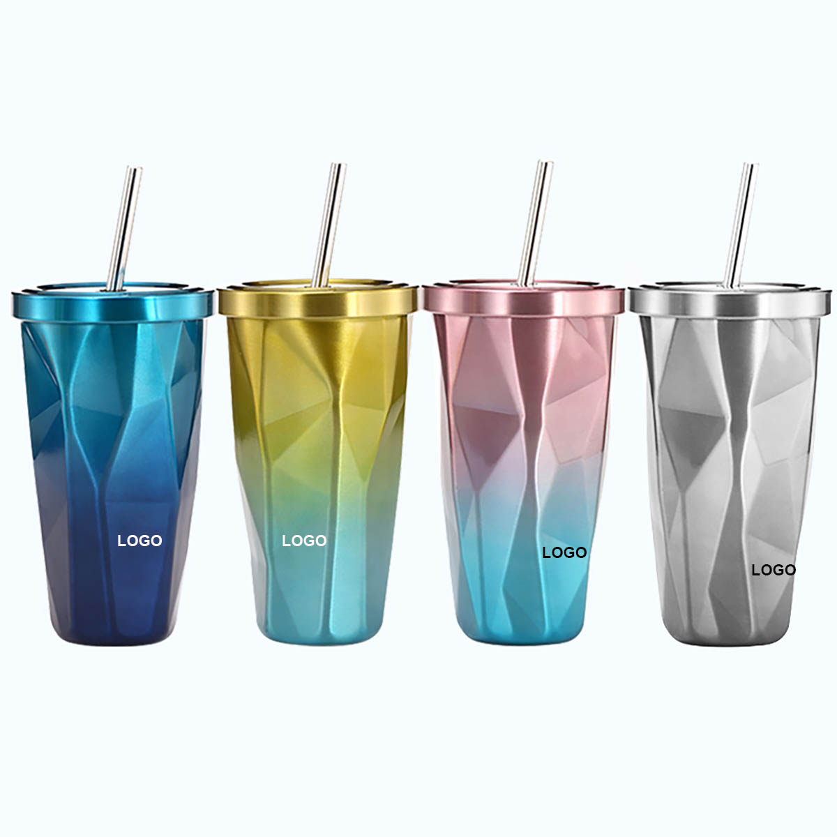 Stainless Steel Tumbler Coffee Water Cup With Straw Lid
