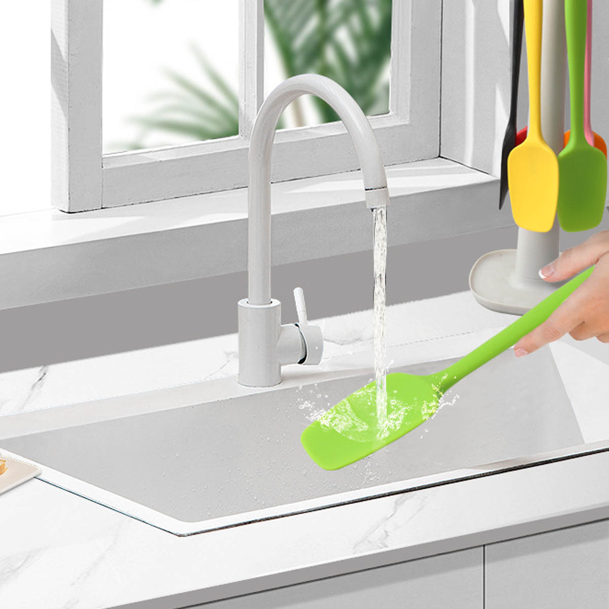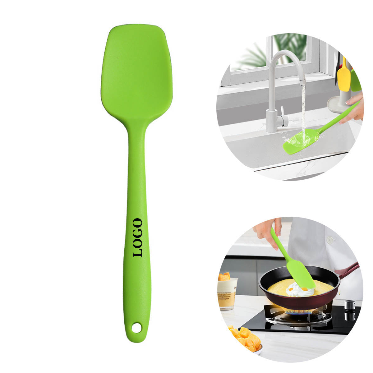 There is a hanging loop on each end of the silicone spatula for easy carriage and storage. Also you can hang it up after clean it make it dry fast.Clean up easy and keep your food safe. The flexible rubber spoon spatula not olny use for kitchen, but also a best helper for cooking when camping,BBQ ect.