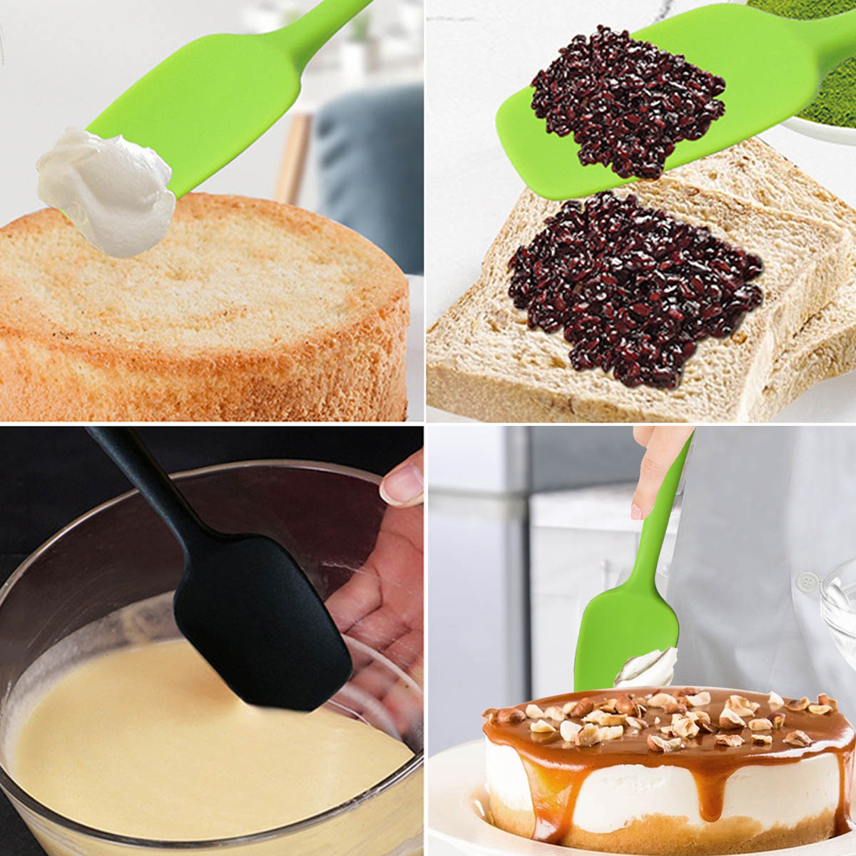The silicone spoon is made of soft food-grade silicone, smooth flexible thin edges, so you can mix and stir directly in your pans, don’t worng it will damage to your cooking utensils. Perfect for coated & non-stick cookware.