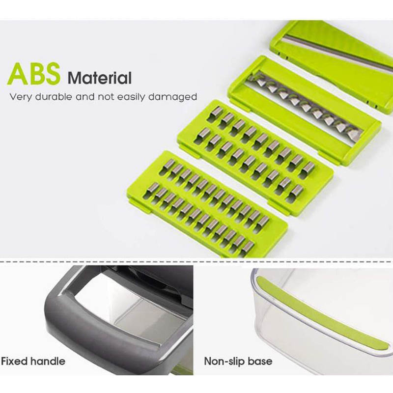 The multifunctional vegetable chopper and slicer chop, dice, slice or grate! This vegetable chopper is a practical kitchen tool, the vegetable chopper offers multiple functions in one highly versatile kitchen gadget. The Onion Chopper is made of top quality materials such as high quality stainless steel blades and food grade materials. The vegetable chopper can cut most types of vegetables and fruits.